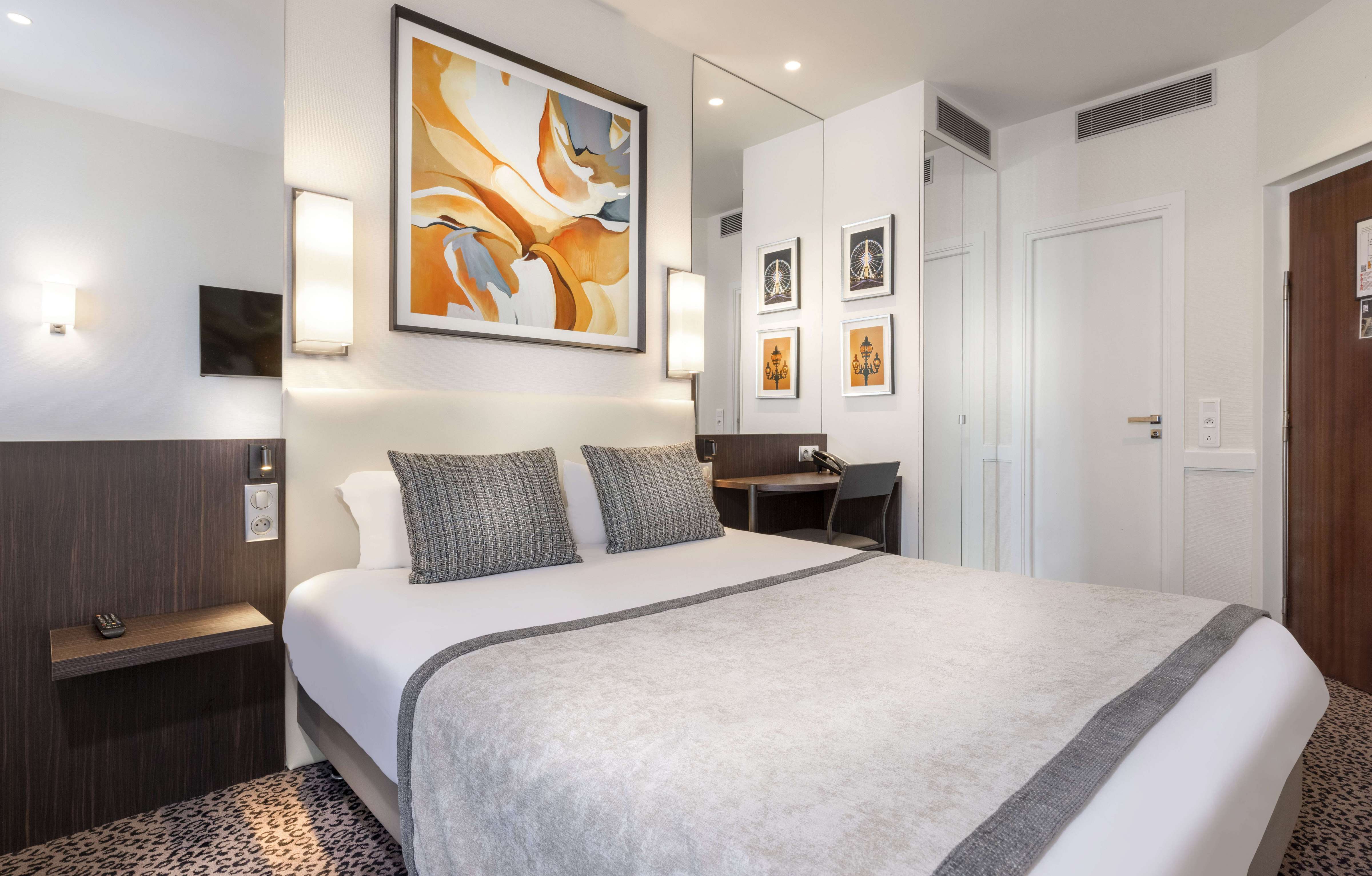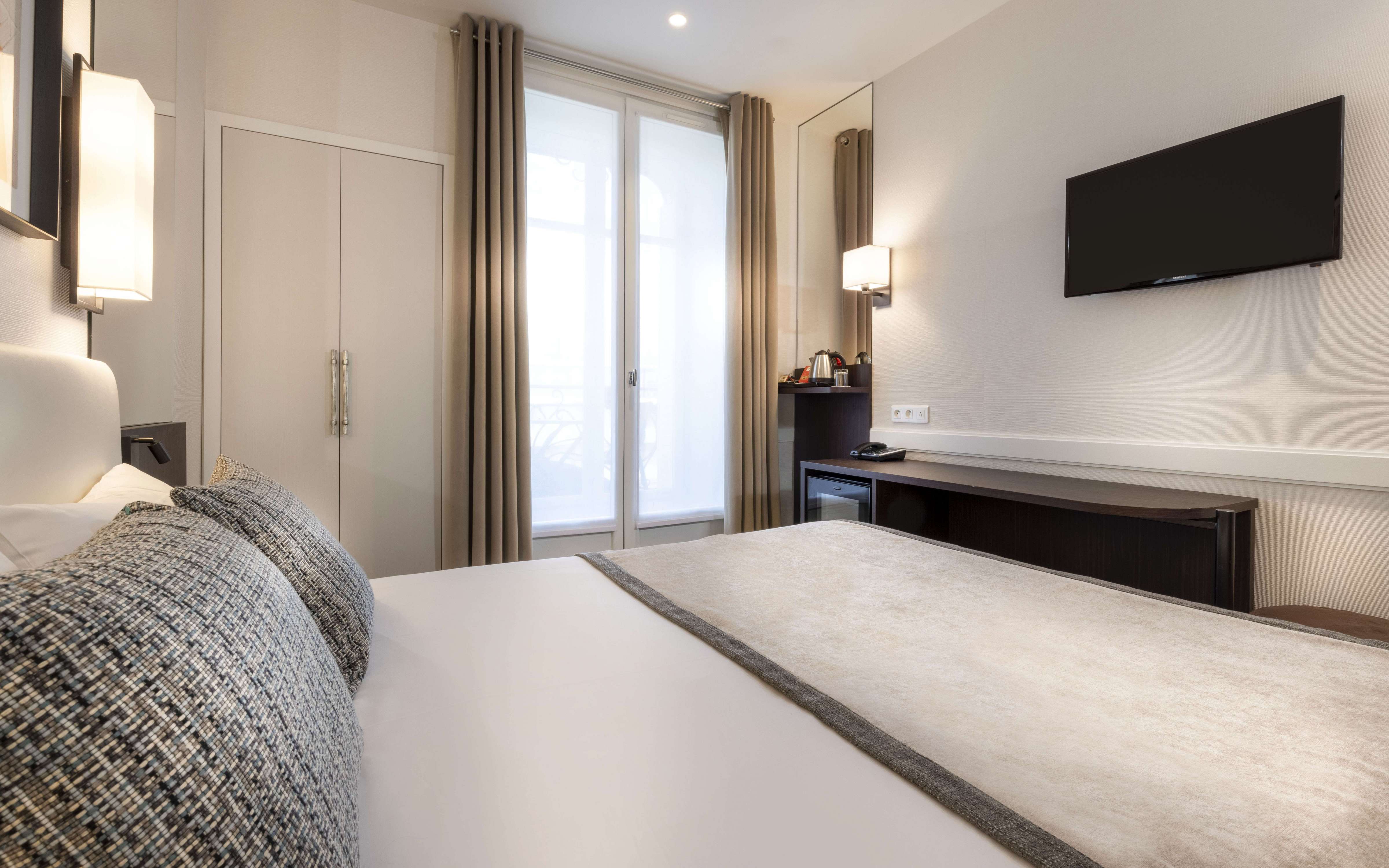Hotel Elysees Ceramic double single use rooms are the ideal choice for your business stays in Paris. Enjoy comfortable beds, free Wi-Fi access and pristine en suite bathrooms.